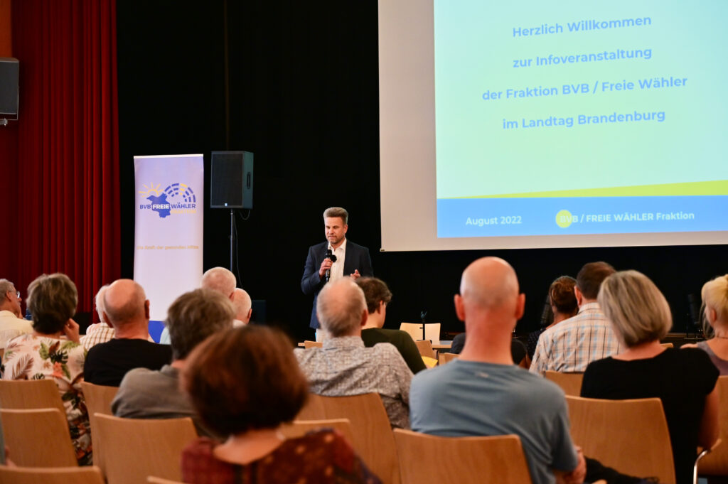 Der Landtagsabgeordnete Dr. Philip Zeschmann (BVB / FREIE WÄHLER) übernimmt den Vortrag.