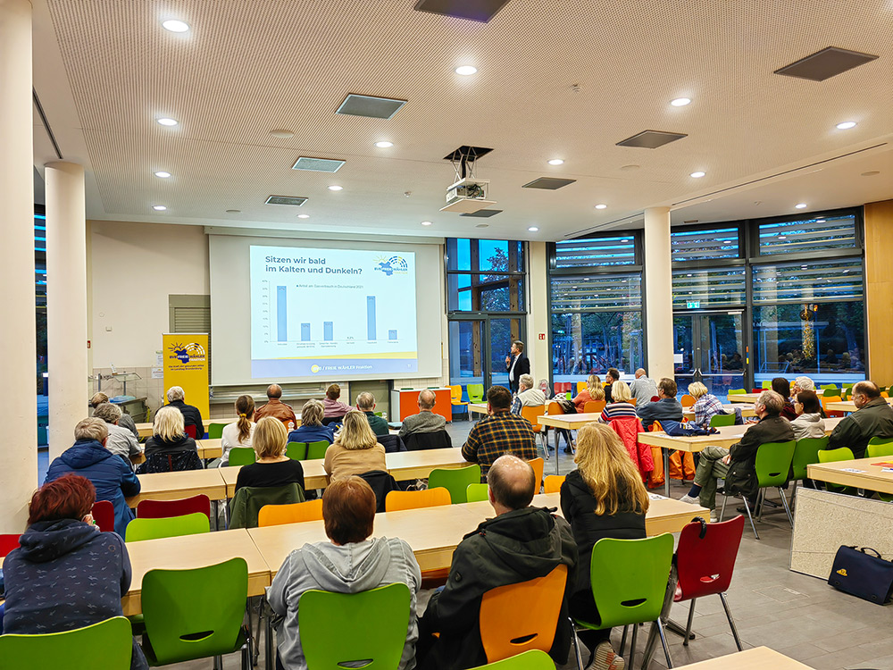 Der Bernauer Landtagsabgeordnete Péter Vida war sichtlich zufrieden mit dem Verlauf des Abends. Rund 70 Gäste waren der Einladung der Landtagsfraktion BVB / FREIE WÄHLER am Dienstagabend (27.9.) in die Grundschule am Blumenhag in Bernau gefolgt. Unter dem Motto „Sitzen wir bald im Kalten und Dunkeln?“ referierte der energiepolitische Sprecher Philip Zeschmann über die aktuelle Lage und gab einen Ausblick. Ein weiterer Schwerpunkt des rund einstündigen Vortrages waren die grundlegenden Versäumnisse und Fehleinschätzungen der Landes- und Bundesregierung. Die Menschen in Deutschland und Brandenburg im Besonderen zahlen seit Jahren die höchsten Strompreise Europas und mit die höchsten der Welt. Als wäre das nicht schon genug, werden die starken Preisanstiege bei Öl, Gas und Strom zunehmend zu einer existenziellen Frage, vor allem für Geringverdiener.