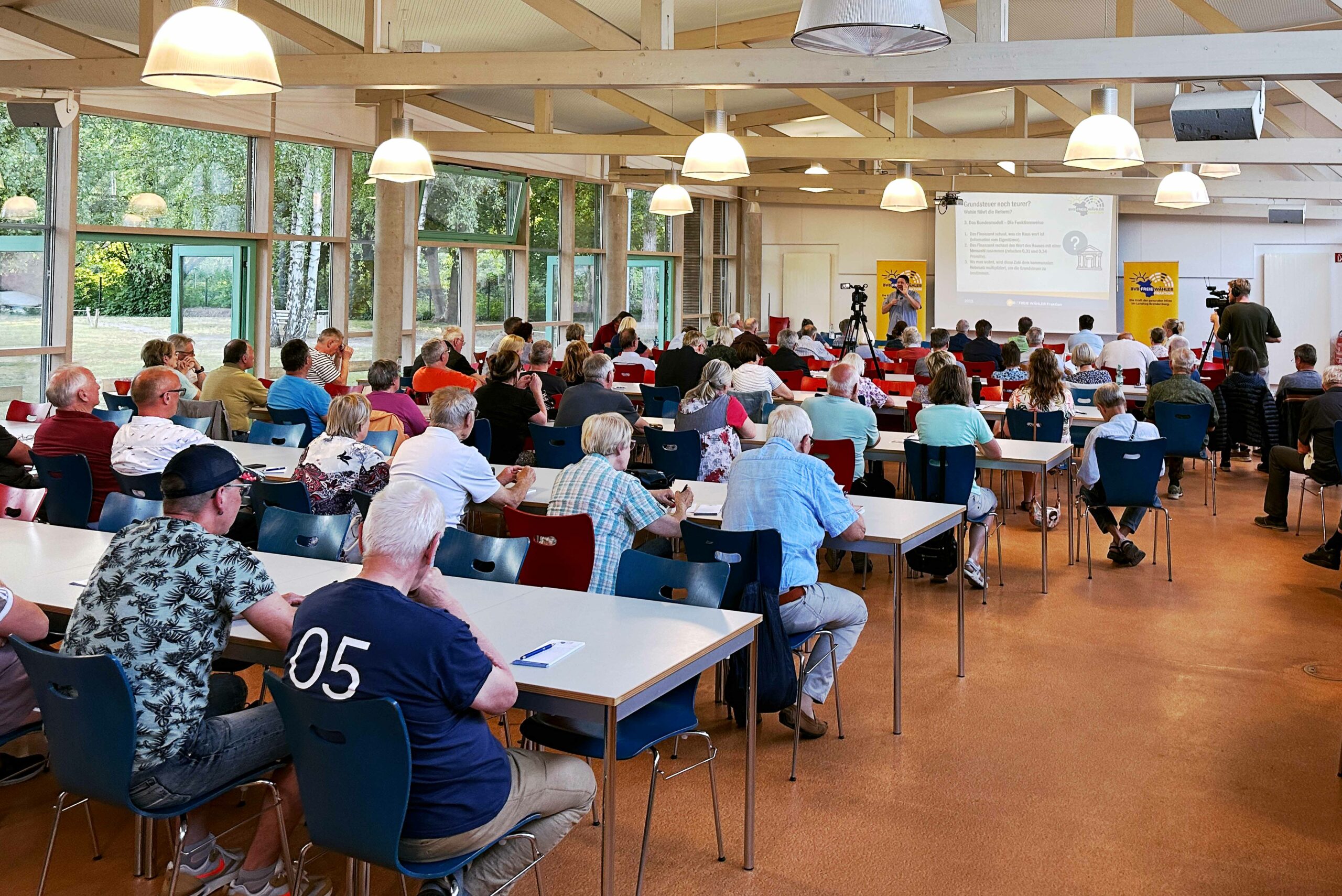 Unter dem Titel „Grundsteuer noch teurer? Wohin führt die Reform?“ gastierte die Infotour der BVB / FREIE WÄHLER Landtagsfraktion am 31.05.2023 in Panketal. Die Betroffenheit ist groß, denn egal ob Mieter oder Eigentümer, alle zahlen die Grundsteuer entweder direkt oder indirekt über die Nebenkostenabrechnung. Durch die Reform werden alle Grundstücke neu bewertet und für viele ist unklar, was das konkret bedeuten wird. Das Thema Grundsteuer-Reform traf daher schon bei der ersten Veranstaltung auf großes Interesse. Rund 120 Gäste informierten sich bei Péter und stellten ihm ihre Fragen zur Reform.